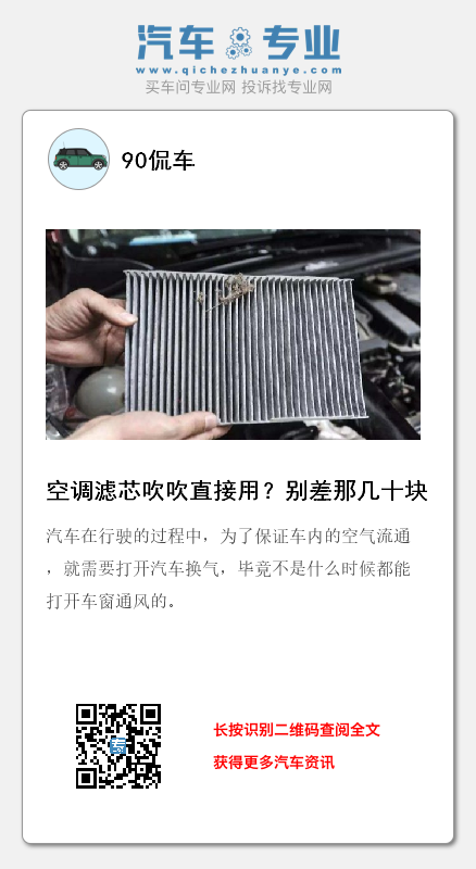因此,4S店建议直接更换而不是吹吹继续使用,还是有道理的。其实,车主选择吹吹继续使用,就是想要省一点钱,但完全没有这个必要,我们可以自己更换空气滤芯。现在网上有很多的汽车配件,空气滤芯也就二三十块,我们直接买一个新的,之后再自己换上就行,也不用在4S店进行更换,省下来的工时费足够换几个空气滤芯了。