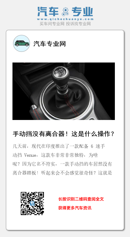 几天前,现代在印度推出了一款配备 6 速手动挡 Venue,这款车非常非常独特,为啥呢?因为它名不符实,一款手动挡的车居然没有离合器踏板!听起来会不会感觉很奇怪?这就是它的独特之处。