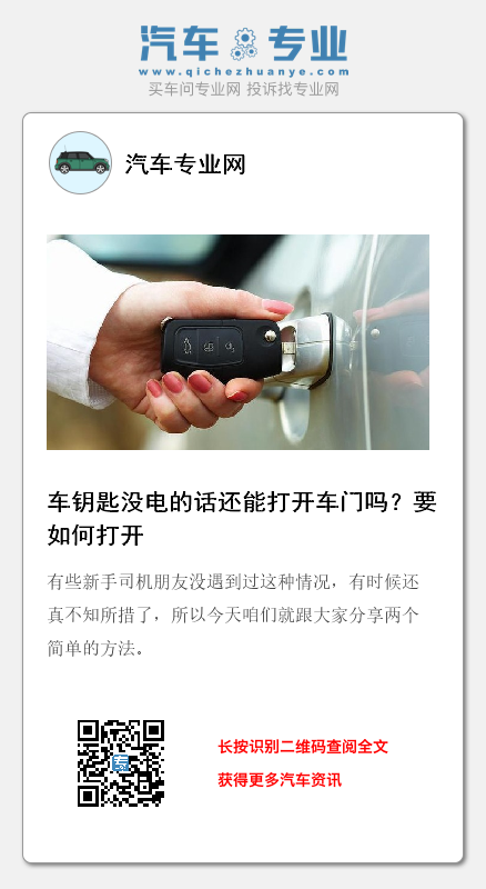 现在几乎路上能见得到的车差不多都用的是遥控门锁了吧,上车前按下遥控器自动解锁,下车后按下遥控器自动锁车。我们是不是早已习惯了伸手就能拉开车门的感觉了呢?但是某天突然车钥匙没电了,按下遥控器车门也不会解锁该怎么办?