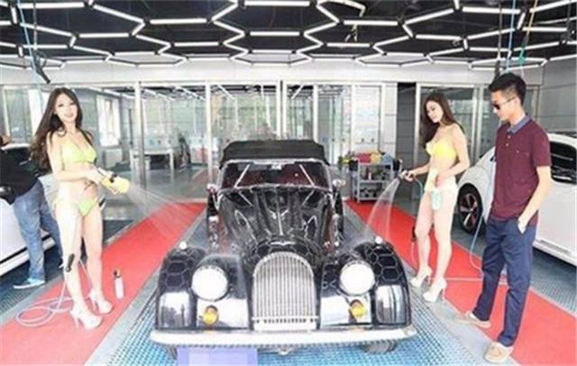 国内洗车一般洗一次只要20元,而且洗得也不算太差,而背景就有一家洗车店,洗一次要880元,富二代开豪车一天来三次!