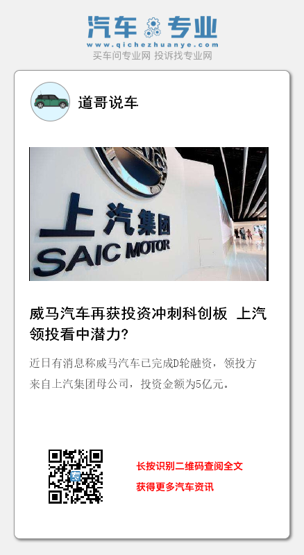 近日有消息称威马汽车已完成D轮融资,领投方来自上汽集团母公司,投资金额为5亿元。据悉,上汽仅为此次投资方中一员,此次D轮融资募集总金额将大幅超过5亿元。这之后,威马汽车将抢滩科创板,有望于年内IPO。