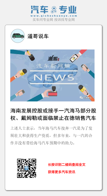 日前,有接近海马汽车人士对《证券日报》记者表示:“海马汽车作为海南省内唯一的整车企业,经过各方的通盘考虑,海南省政府最终决定将一汽海马(一汽与海马汽车合资公司)中一汽所持的股权收购过来。”