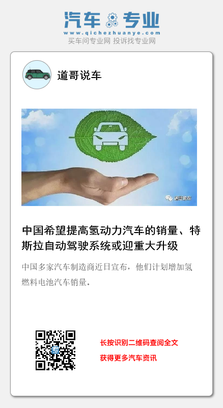 中国希望提高氢动力汽车的销量 支持新政或9月推出