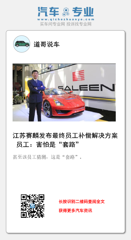 9月17日,江苏赛麟汽车科技有限公司员工李先生向《道哥说车》编辑透露,江苏赛麟汽车科技有限公司最终的员工补偿方案出来了。