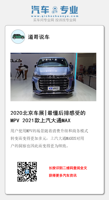 此外,上汽大通MAXUS G20配备的斑马智行互联系统、高阶ADAS智能驾驶辅助系统等科技配置,在将智能科技融入汽车生活的同时,也极大程度上提升了驾乘舒适性和便利性。
