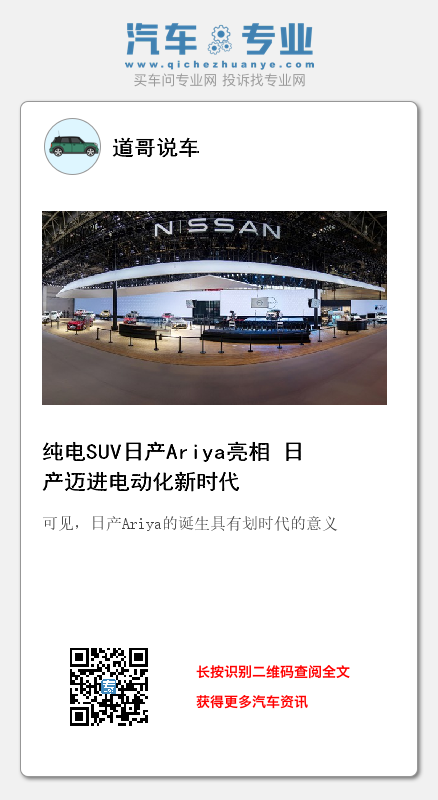 从日产对Ariya的关注程度超过GT-R50这一点就足以看出,Ariya在日产汽车中的地位绝对处于战略级,内田诚在北京车展期间接受《道哥说车》等媒体采访时表示,“Ariya是继轩逸・纯电之后,第二款投放到中国市场的电动车型。Ariya的意义不仅是日产汽车推出的众多新型车中的一款,更是为日产汽车开启新篇章的重要车型。这是一款融合了日产汽车引以为傲的电动化、智能化以及驾驶乐趣的自信之作”。