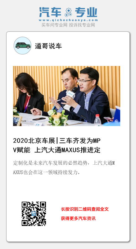 “新四化”引领的汽车产业发展趋势下,汽车消费快速升级,消费者对汽车产品的个性化定制需求愈显。在2020北京车展中,作为全球第一家实施C2B大规模智能定制模式的车企,上汽大通举行了一场以“全能MPV定制专家”为主题的发布会。