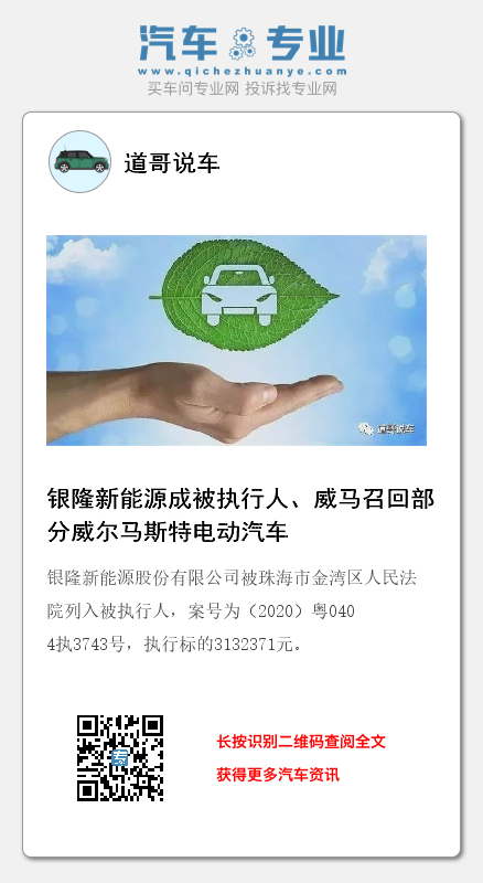 10月27日,盖世汽车从企查查APP获悉,银隆新能源股份有限公司被珠海市金湾区人民法院列入被执行人,案号为(2020)粤0404执3743号,执行标的3132371元。