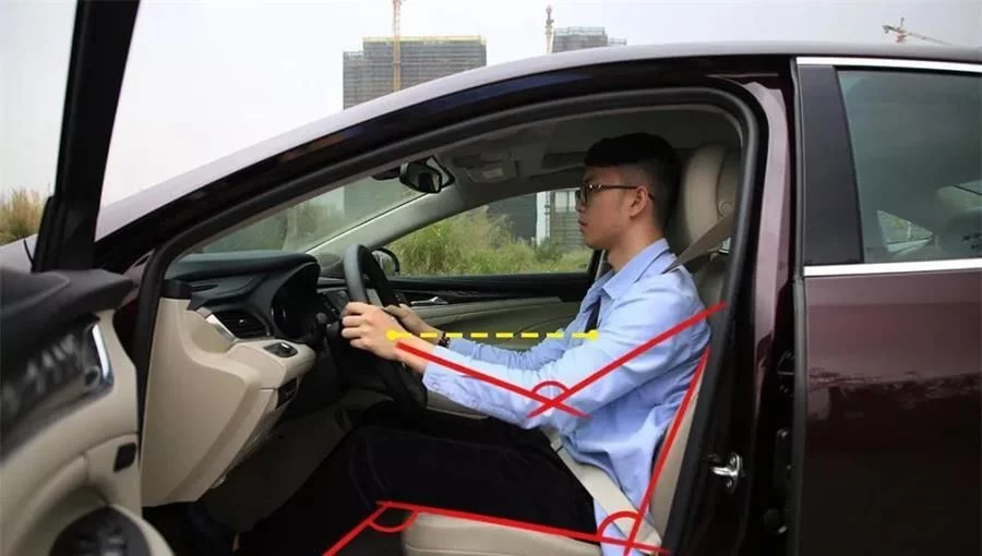 第一个方面就是坐姿。调座位时,车就像人的鞋子,鞋带绑得太紧或太松,走路都不舒服。开车也一样,要杜绝座位调得太前,趴在方向盘上开车;也要杜绝座位调的太后,靠背压得很低,躺着开。其实靠背调成九十度,再微微往后压一点,坐的舒服就可以了。