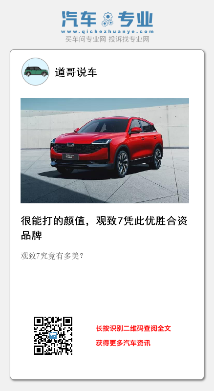 不过不得不说,在智能科技搭载方面,中国品牌本来就比合资品牌更有优势,从一点论之,观致7能优胜它们,只能算是“常规操作”。