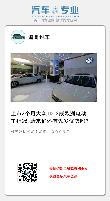 据外媒报道,大众ID.3在2020年10月成为了欧洲市场销量最高的电动车,销量达10315辆。值得一提的是,这距离大众ID.3首次交付仅过去了不到两个月。可见,尽管大众汽车在纯电动车领域起步不是很早,但“后来居上”的势头显然已经有所显现。而当大众汽车等传统汽车巨头纷纷将自家的纯电汽车搬上市场,诸如特斯拉、蔚来等还会有如此高的热度吗?