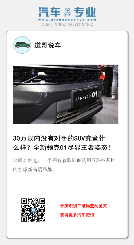 “30万以内我们没有对手!”究竟是谁出此豪言?是谁的App注册量已超过113万?是谁单月销量突破两万台?又是谁上市三年就收获了40万+的车主?它的名字包含着设计团队突破现状引领未来的精神,也包含着拥抱未知敢于挑战的人生态度,这就是领克,一个拥有着欧洲血统和互联网基因的全球新高端品牌。