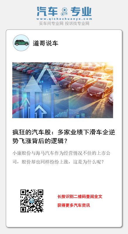 但是,《道哥说车》编辑注意到,小康股份与海马汽车作为经营情况不佳的上市公司,股价却也同样纷纷上涨,这是为什么呢?