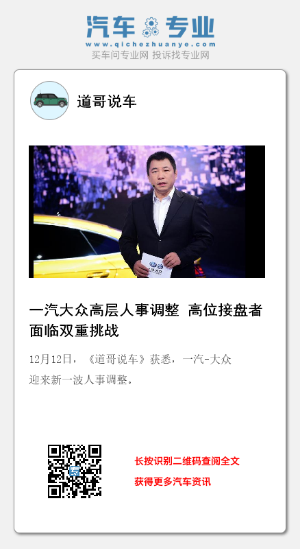 值得一提的是,尽管潘占福、郭永锋履历出色,但此时接任一汽-大众的压力并不小。据悉,今年11月一汽-大众销量约为22.3万辆,同比增长7.9%,市场份额为10.7%,继续领跑国内乘用车。而今年前11个月,一汽-大众累计销量约为187.02万辆,同比增长1.4%,2020年国内乘用车市场销量冠军基本可以锁定。未来如何保障一汽-大众的销量地位和稳定增长将是潘占福、郭永锋面临的关键问题。