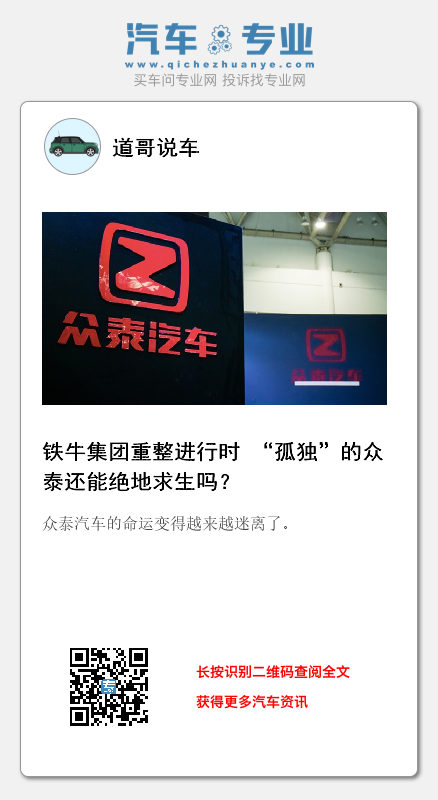 按照众泰公告的说法,铁牛集团的重整对于众泰汽车追索业绩补偿有一定的作用,但究竟是以股份移交方式兑现还是以现金补偿方式兑现还未可知。而如果是以股权移交方式兑现,众泰汽车无非是股权发生变化,对众泰汽车的困境似乎并无实质性帮助。