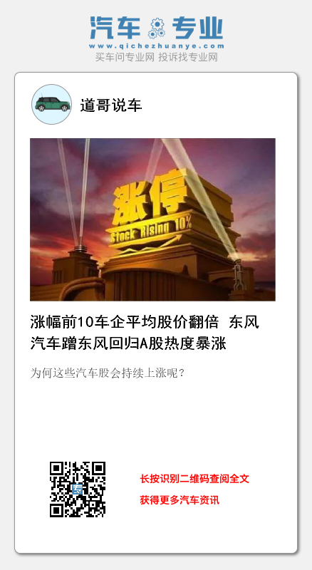 12月初,汽车股迎来了一波疯涨,《道哥说车》也第一时间关注到以长安汽车为首的汽车股大涨的情况,并撰写《一波韭菜涌入汽车股疯涨17家车企大股东快速减持开溜》一文。