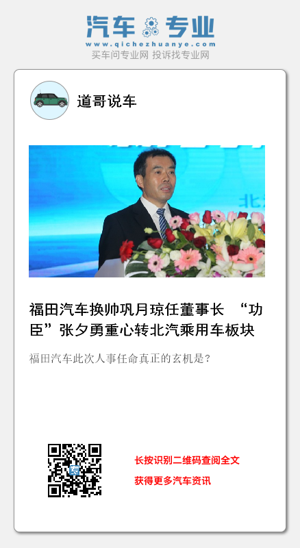《道哥说车》编辑注意到,此前福田汽车董事长从徐和谊到张夕勇一向是由北汽集团派驻的,甚至坊间传言当年徐和谊以不担任福田汽车董事长换取王金玉离开福田汽车体系。这次分别担任董事长、总经理的巩月琼、常瑞都属于福田体系内一步步成长起来的人,他们从未离开过福田汽车体系。