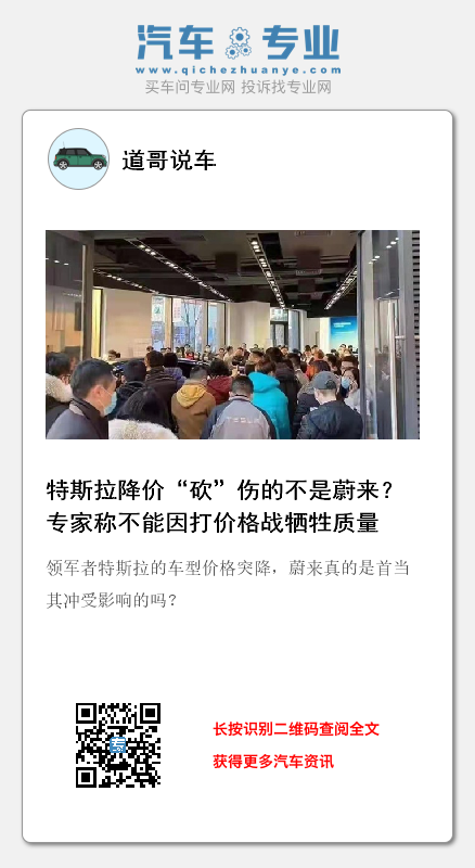 不过,针对这场由特斯拉“降价”带来的风波,有业内人士对《道哥说车》编辑表示,“面对特斯拉发起的价格战,蔚来的价格能否保持得住是一个挑战”。另有某汽车工程师对行业表示担忧:“质量是很重要的,不能因为打价格战牺牲质量。”