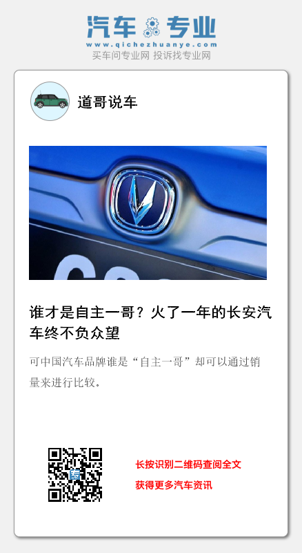 不过,长安汽车重回“自主一哥”的地位确实可喜可贺。2014-2016年长安汽车连续三年夺得自主品牌销量冠军,尤其是2015年,率先实现产量销量双双破百万,2016年更是卖出了128万辆的好成绩,一时风光无限。但2017年,长安汽车却意外地被吉利汽车反超,从此走下大哥宝座。经历了三年追赶,长安汽车终于又找回曾经的江湖地位。