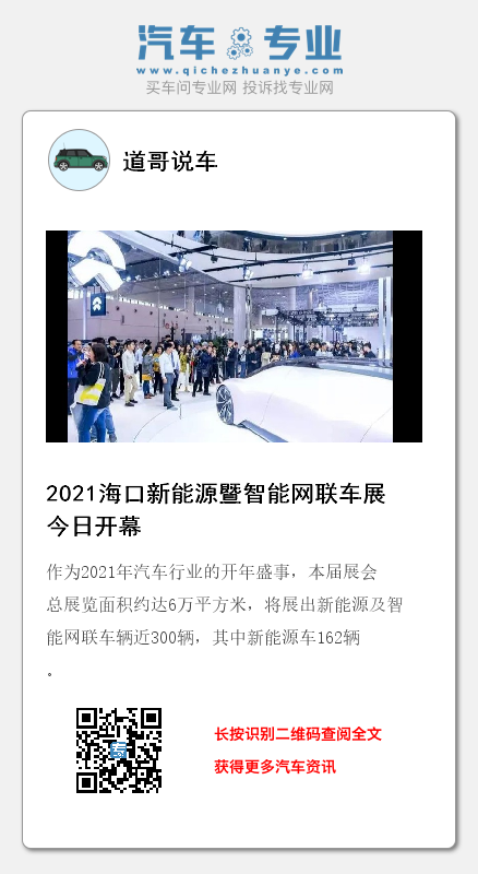 1月8日,以“绿动未来”为主题的2021(第三届)海口国际新能源暨智能网联汽车展览会(以下简称:海口新能源暨智能网联车展)正式开幕,展览时间为1月8日-11日。作为2021年汽车行业的开年盛事,本届展会总展览面积约达6万平方米,将展出新能源及智能网联车辆近300辆,其中新能源车162辆。