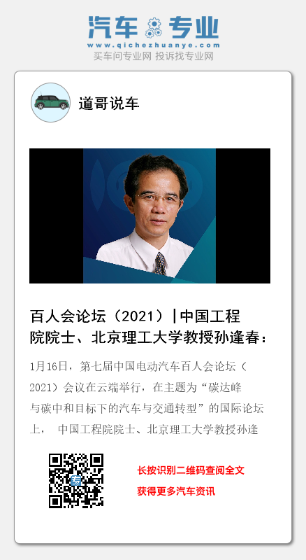 1月16日,第七届中国电动汽车百人会论坛(2021)会议在云端举行,在主题为“碳达峰与碳中和目标下的汽车与交通转型”的国际论坛上,