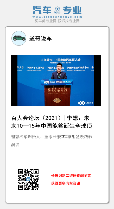 随着整个中国经济的发展、整个智能电动车的发展,我相信在未来的10—15年中国能够诞生全球顶级的品牌。