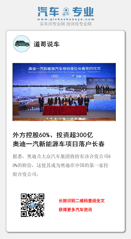 外方控股60%、投资超300亿 奥迪一汽新能源车项目落户长春