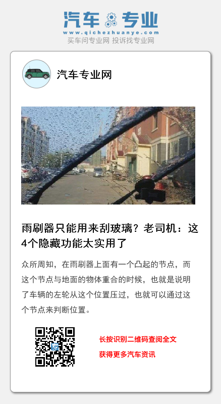 每到雨雪天气,各位司机就会打开车窗上的雨刷器,防止滴落的雨雪影响行车视线,而到了天气晴朗的时候,就将雨刷器收起“休息”,似乎雨刷器只是为了清除视线障碍而来的,其实不然,雨刷器有这4个隐藏功能,不是老司机根本不知道。