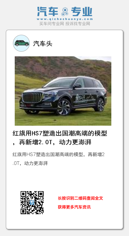 而且红旗汽车绝对是很多成熟男性的最爱,开出去也倍儿有面儿,2021款红旗HS7也已经正式上市,并且还为了丰富消费者们的选择,新增了2.0T版本车型,这次上市的新款红旗HS7共有7款车型,价格区间在27.58万到45.98万。除此之外该车还有哪些优势呢?一起来看看: