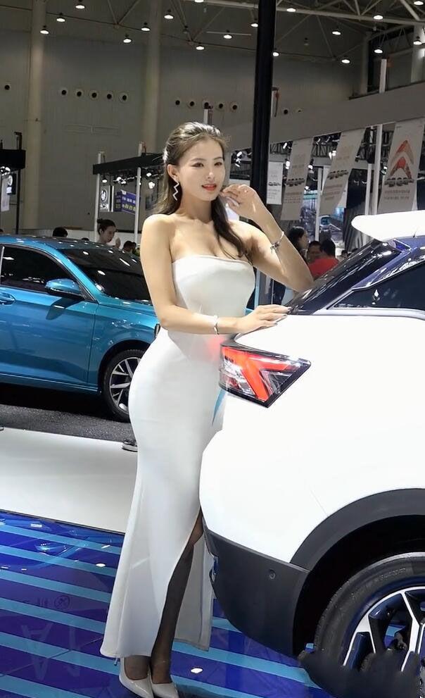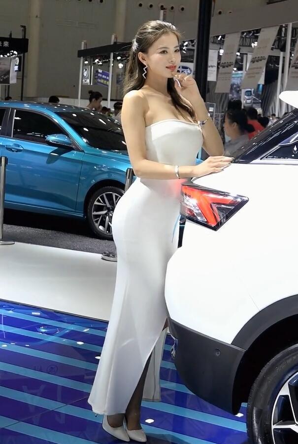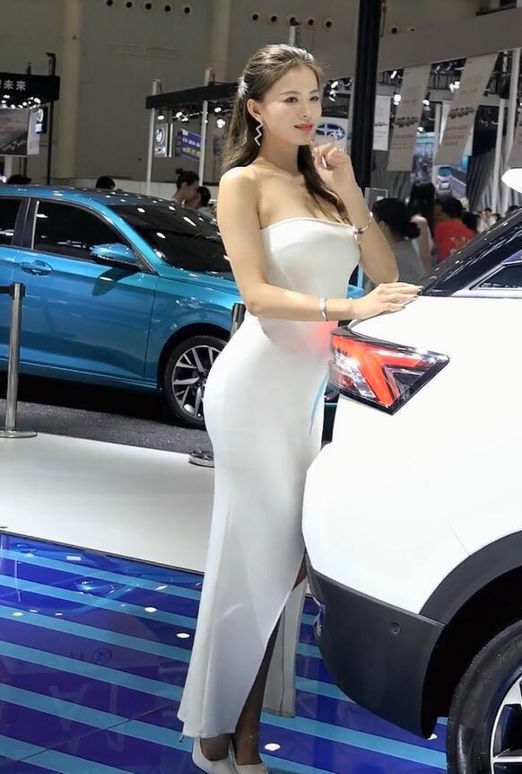这样的时尚美女,着装放开,自信。一种与众不同的造型,传递出满满的女人味,开放、舒适的感觉,给人留下极好的印象分。喜欢这样穿着纯白色连衣裙的美女车模吗?