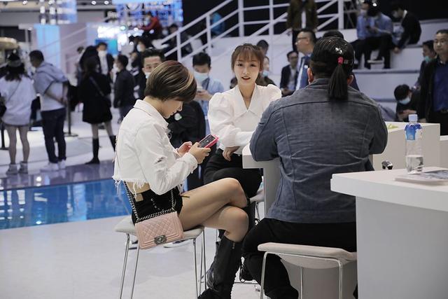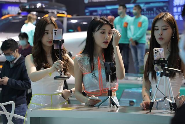 除了车模以外,本次展会还吸引了众多自媒体主播参加。
