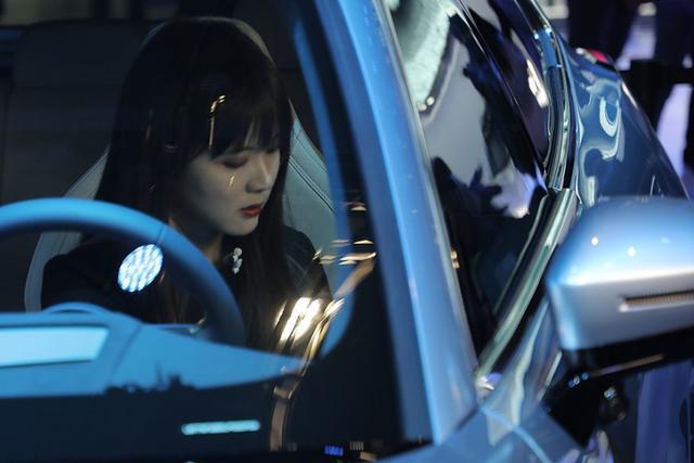 在吉利控股集团旗下的智能纯电品牌——极氪展台,一名观众正在体验极氪001车型。