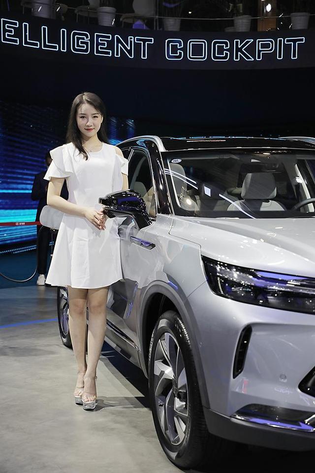 这次车展上,北汽极狐和华为的深度合作开辟了一种新的造车模式,北汽展区的模特也十分亮眼。