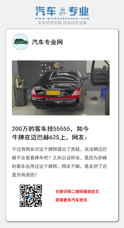 首先要说的是客车不是套牌,就算套,也不会套这么好的号,再说了,从赤峰到北京,沿途几个省,常年跑这个线路,谁敢套牌?客车不是套牌,迈巴赫也不是套牌,难不成是客车发财了,然后买了迈巴赫?其实也不是。以前蒙D55555的确在客车上,后来迈巴赫62S相中了这个牌照,然后就在迈巴赫上了,想必有人在想,车牌不能买卖,怎么可能从客车到迈巴赫上呢?