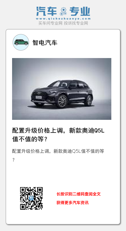 从配置升级和对应价格来看,新款奥迪Q5L入门版的40TFS似乎性价比更高,不过这样的升级不知道消费者能不能买单,毕竟增加了一点配置,看起来比现款划算,但实际上该花的钱一分没少。