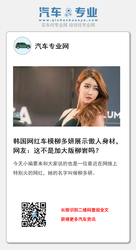 柳多研作为一名来自韩国网红圈里面的一名网红,最近却在我们中国爆红了起来,成为了很多人都非常熟悉的一名网红。提到她的话,就不得不提一下她的颜值了和身材了,作为一名车模出身的她,本身无论是颜值还是身材都是特别的完美的,在走红之前,其实她就已经开始游走在各大知名车展的现场上面了。像很多我们特别熟悉的知名汽车厂商的车展和新产品的发布会其实都是会邀请她去做车模的,可见大家对于她是有多么的认可了的。