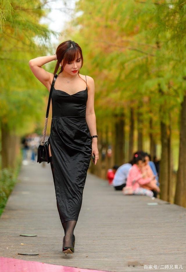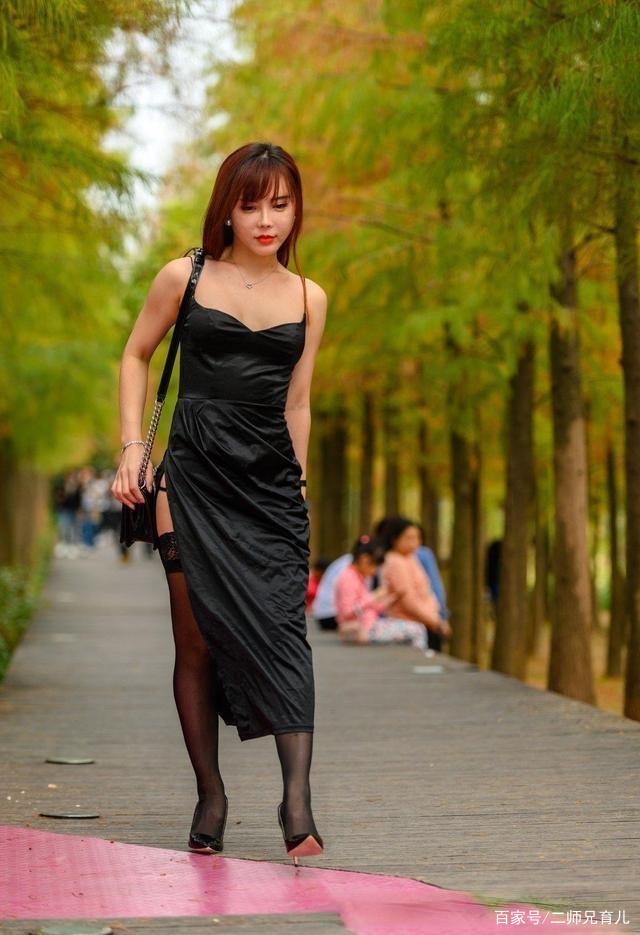 女人的下身是黑色的臀围裙,和讨厌的高跟鞋相结合。如此,将美腿变成1米2的距离。配上匀称的美腿,创造出美腿的最佳范畴。另外,这位美女站得笔直,神态优美,让人感到舒适舒适。