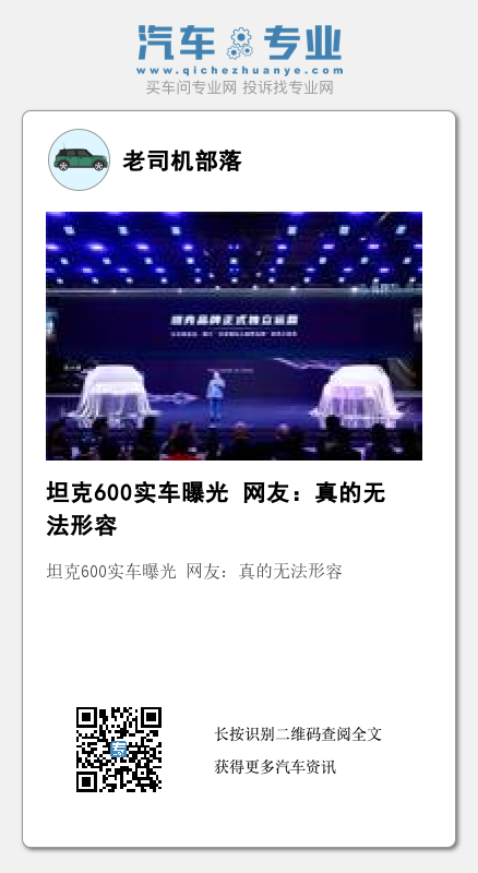 针对坦克600的外观,有网友表示“300之后再无坦克”、“真的无法形容”、“车标最后会成为坦克系列的一个遗憾!”,不过也有网友认为“漂亮,值得一试”。