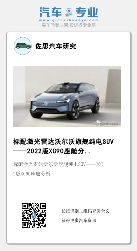 沃尔沃在7月1号公布了沃尔沃电动车技术规划,间接公布了沃尔沃首辆纯电SUV——XC90 Electric Successor的上市日期,即2022年。