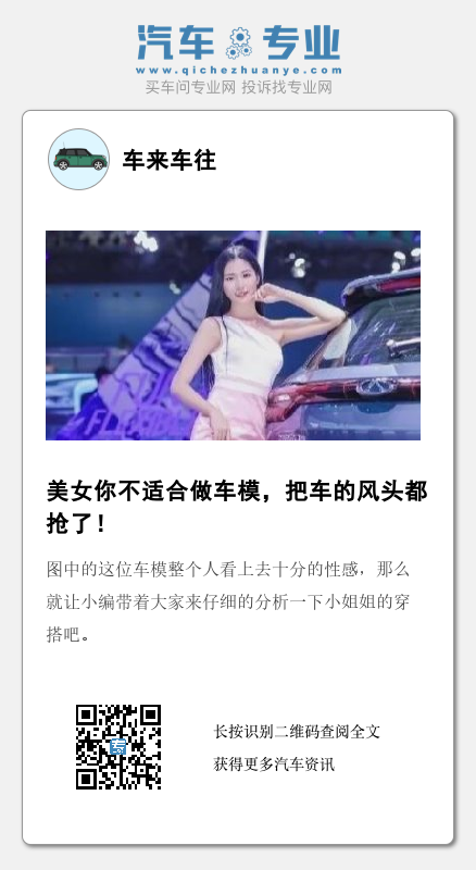 现在很多车商为了达到自己骑车高高的销量会让一些漂亮的女生穿的十分性感,并且皮肤格外的白皙乌黑,常量的头发披散的肩部,骄傲自信的站在车的旁边,这就是大家所听说的车模,一个车模的作用是十分大的,不仅吸引很多男生朋友的视线,同时还可以将很多买家的心留在这辆车上,而且她散发着与人胳膊相同的魅力,让人们看了十分的喜欢。图中的这位车模整个人看上去十分的性感,那么就让小编带着大家来仔细的分析一下小姐姐的穿搭吧。