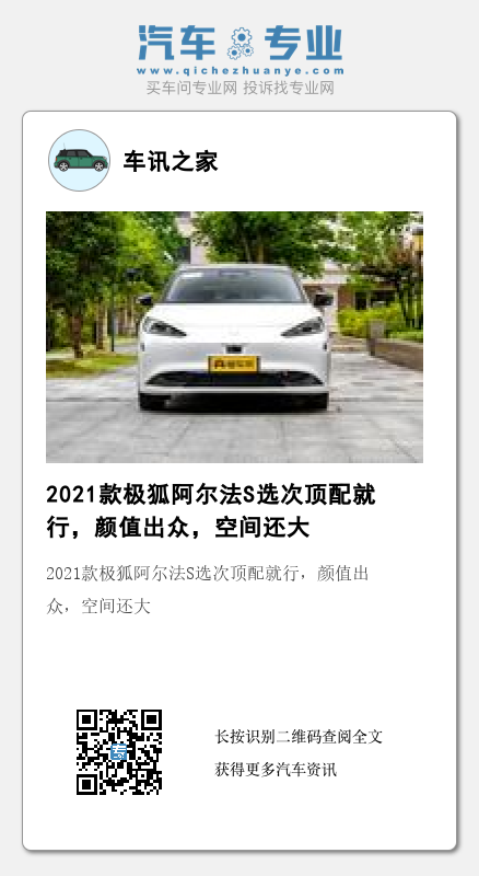 总的来说,在30万级市场里,Model 3确实畅销,可如果对比最大续航里程和空间这两个部分的话,它确实和阿尔法S有着一定的差距。对于生活在限牌城市又喜欢自驾游的人来说,购入一台长续航大空间的代步车,自然能够减少平时充电的频率和提升出行时的后排乘坐舒适性。当然了,我经常说,没有最好的车,只有更适合自己的车,买车时,要根据自己的需求来买。写在最后:你觉得这款极狐阿尔法S怎么样?欢迎留言表达你的观点。
