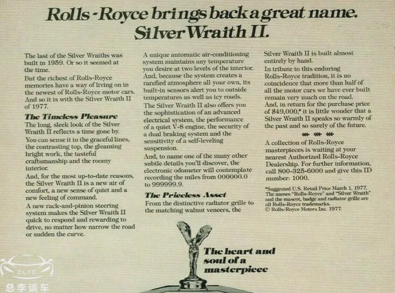 1965年-1980年,银影的建议零售价是11900美元-38750美元不等,价差之所以大并不是因为选配,而是因为年代不一样,60年代和70年代的价格是不一样的,另外,建议零售价基本是买不来的,因为当年劳斯莱斯的产能有限,买车要排队,等半年不足为奇,因为一车难求,所以4-5万美元的成交价实属正常。