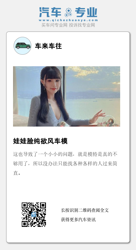 某品牌找的就是大家非常熟悉的平面模特来客串车模,不得不说这一手还是真的可以。毕竟人小姐姐也是家喻户晓尤其是宅男群体,都非常喜欢的,她的写真大家也都看过。