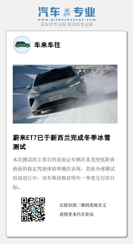 近日,据蔚来汽车官方消息,旗下蔚来ET7已经在新西兰SHPG国际测试场完成为期一个月的冬季冰雪测试。本次测试的主要目的是验证车辆在各类型低附着路面的稳定驾驶体验和操控表现,其他全球测试持续进行中,该车继续维持明年一季度交付的目标。