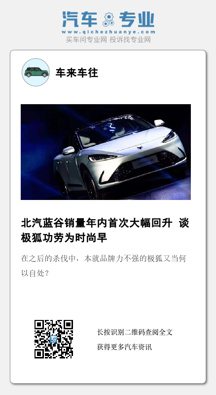 至于倍受关注的阿尔法S华为HI版,凭借华为高阶自动驾驶ADS系统虽获得了不错的关注度,甚至据称两天内累计订单已经超过1000台。不过,对亟待提升市场表现的北汽极狐来讲,阿尔法S华为HI版似乎远水解不了近渴,毕竟该车型明年才开始批量交付,北汽新能源想以极狐为救世主显然还需要时间。