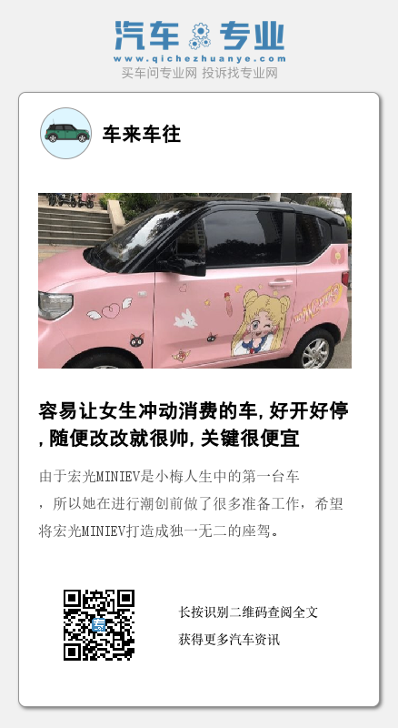 说实话,我还是比较佩服小梅,说买车直接就提了,有想法潮创也直接就改了。当然,我相信这些还是建立在宏光MINIEV价格足够便宜,而且网上改装配件多的基础上。毕竟她买车+潮创,也才花了4万左右,现如今随便一台车况好的二手车都不止这个价,由此可见,宏光MINIEV这款车销量这么高,还真不是偶然。