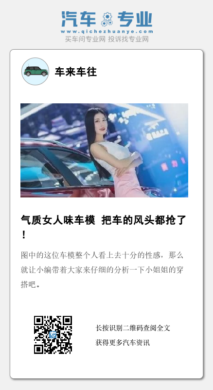 现在很多车商为了达到自己骑车高高的销量会让一些漂亮的女生穿的十分性感,并且皮肤格外的白皙乌黑,常量的头发披散的肩部,骄傲自信的站在车的旁边,这就是大家所听说的车模,一个车模的作用是十分大的,不仅吸引很多男生朋友的视线,同时还可以将很多买家的心留在这辆车上,而且她散发着与人胳膊相同的魅力,让人们看了十分的喜欢。图中的这位车模整个人看上去十分的性感,那么就让小编带着大家来仔细的分析一下小姐姐的穿搭吧。