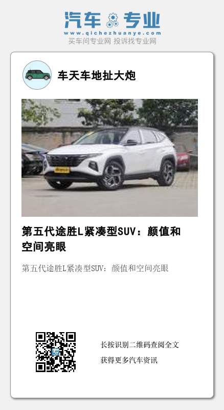 总括来讲,第五代途胜L外观和空间感都不错,舒适度也足够,作为家庭城市SUV还是不错的选择。