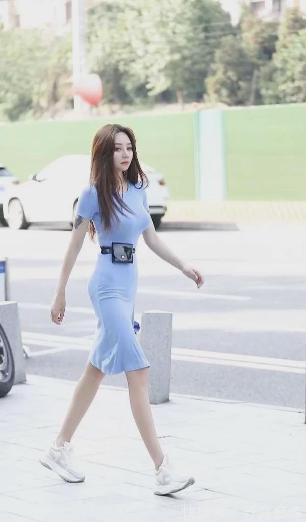 佳人选用白色运动鞋,经典的蓝白色搭配,清新自然,配以佳人长发,整体造型时尚精致,青春感十足。您喜欢这种衣着吗?请在下面留下你的评论。