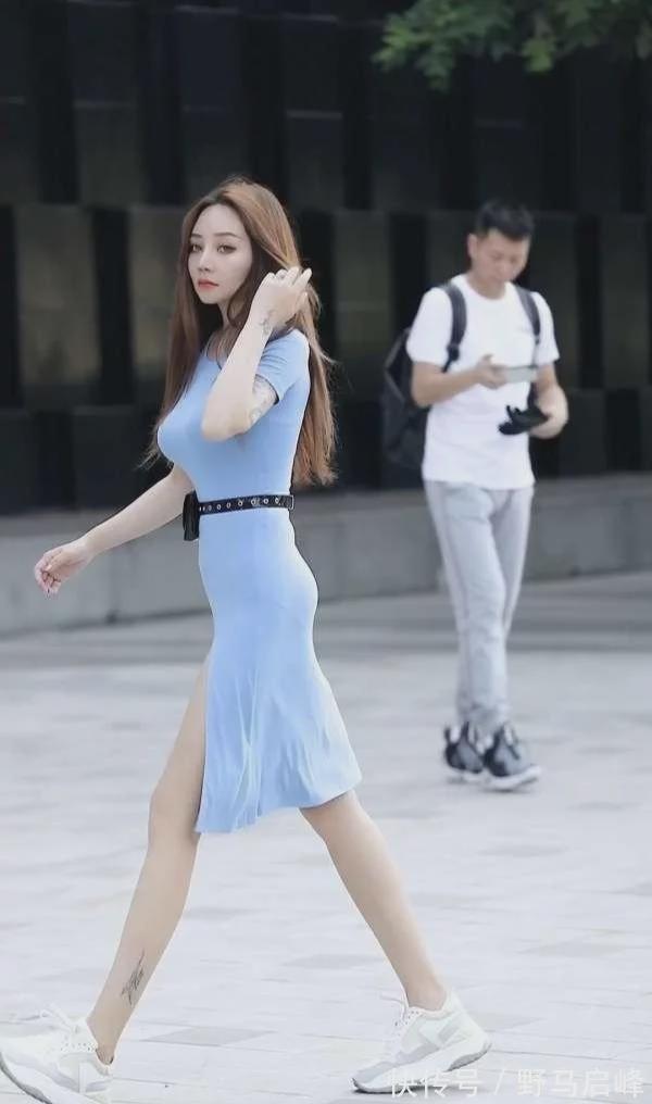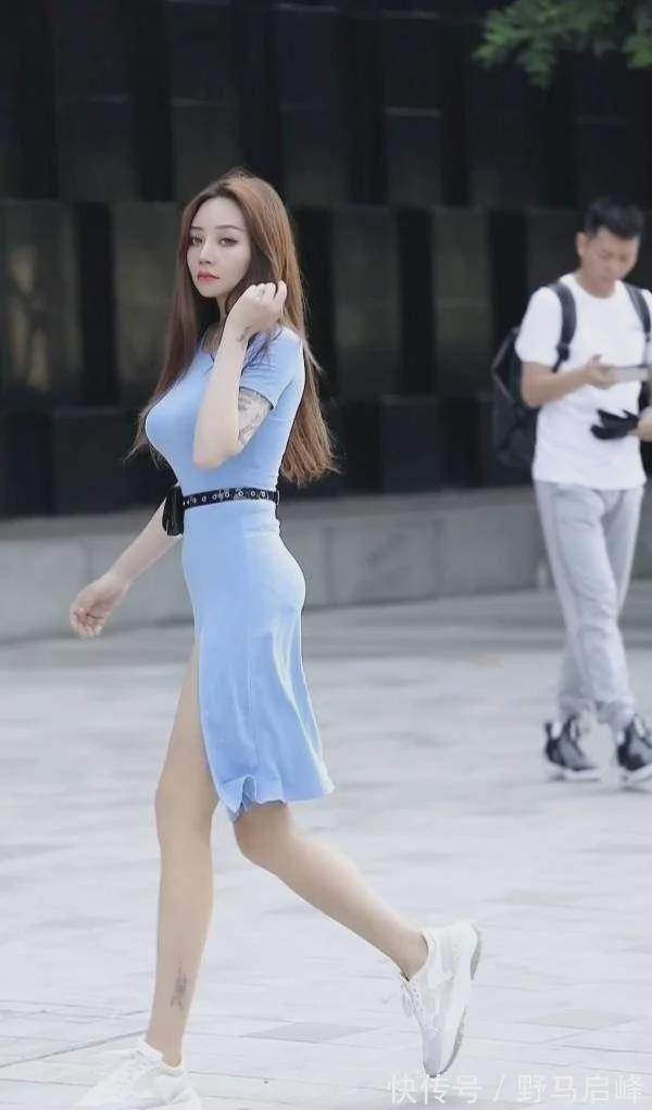 喜欢这个机车美女,穿上了一条款式简单的蓝色开叉裙,很好的修饰了美女的身材气质。裙边的开叉设计,突出了腿部的长条,使整体造型更具女人味。裁剪时,采用了腰部收起的版型,使整体造型更加匀称。